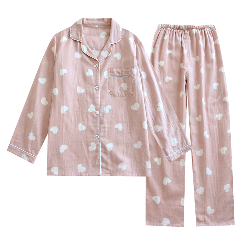 Stylish Design: Features a classic lapel collar and cute heart prints for a fresh, simple look.