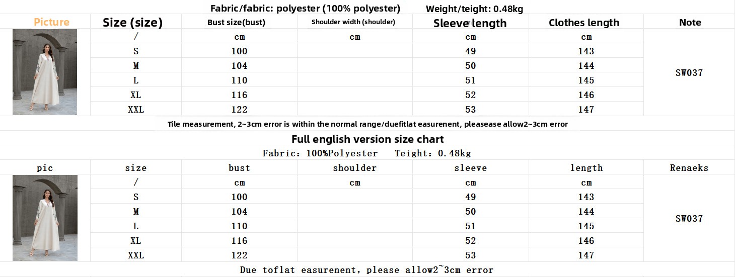 Muslim Women's Robe V Neck Embroidered Arabic Dress